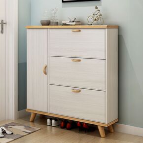 超薄翻斗窄鞋柜实木色简约带抽屉经济型门厅柜带衣架家...