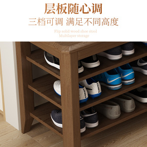 北欧简易鞋架多层全实木换鞋凳家用门口可坐穿鞋凳玄关...