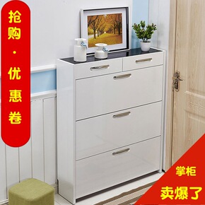烤漆白色鞋柜家用门口进门简易柜子储物柜超薄翻斗组装...
