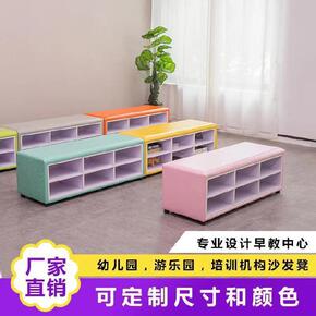 儿童早教软包围栏长条沙发凳幼儿园收纳鞋柜舞蹈室培训...