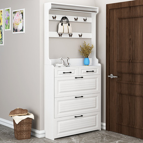 超薄翻斗鞋柜带衣架简约现代家用门口玄关柜多功能鞋架...