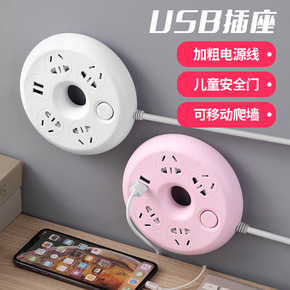 USB插座 爬墙插排用开关4位排插创意插线板...