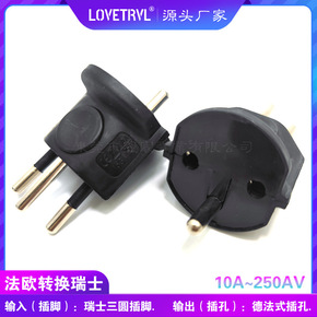 全铜三圆瑞士转法式欧式插头 法式转瑞士插头 锁紧式...