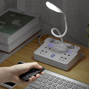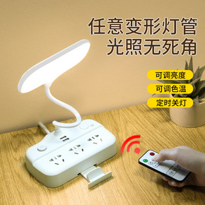 多功能学习台灯排插USB充电插座遥控LED台灯折叠...
