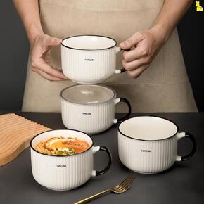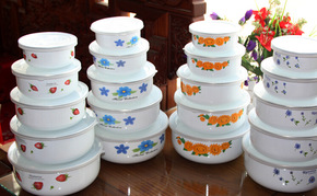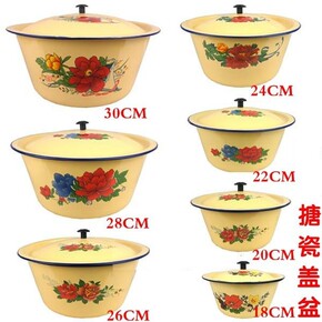家用大号平底加厚搪瓷碗搪瓷盆 家用 厨房大汤碗带盖...