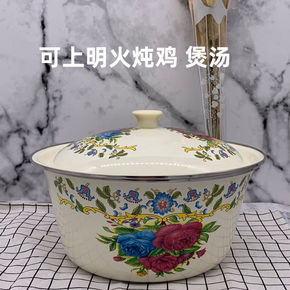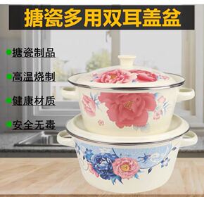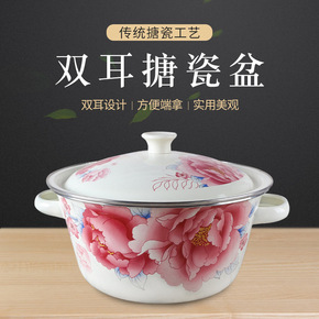 加厚搪瓷汤盆搪瓷带盖盆双耳包边洗手碗搪瓷碗和馅和面...