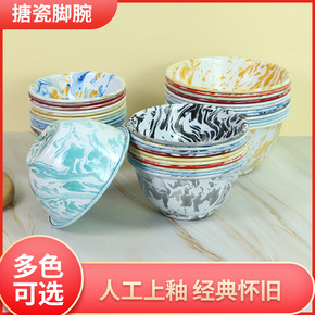 搪瓷脚碗中式饭碗家用搅拌碗创意沙拉碗大号泡面碗老式...
