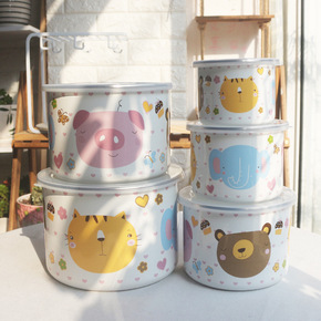 萌宠五件套保鲜碗搪瓷加高加厚保鲜盒2可冷藏可加热...