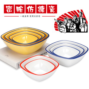 密胺老式仿搪瓷甜品碗冰粉方碗面碗怀旧餐具市井火锅汤...