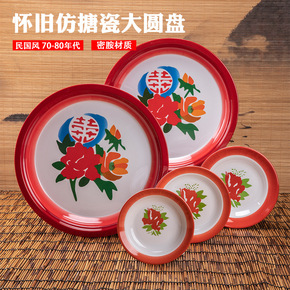 密胺复古怀旧仿搪瓷麻辣烫圆盘市井火锅菜盘创意小吃盘...