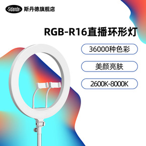 斯丹德LED直播补光灯16寸环形灯RGB彩色常亮柔...