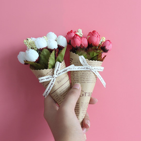 欧式婚庆假花牛皮纸仿真花套装家居室内客厅装饰假花拍...