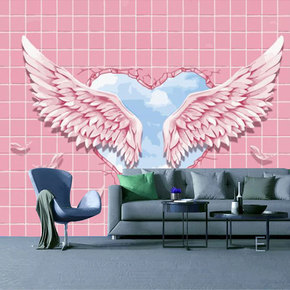 网红奶茶店墙纸3d立体舞蹈室装饰粉色羽毛拍照背景墙...