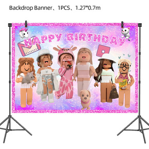 跨境ROBLOX粉色虚拟世界主题摄影生日背景布派对...