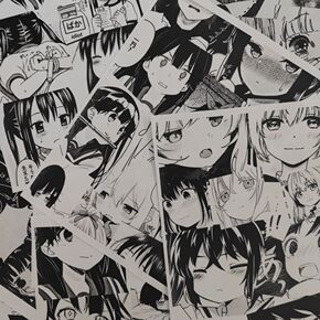 日系少女背景壁画家居墙贴剧本杀黑白打印无痕胶漫画拍...