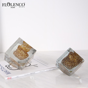 现代简约手工玻璃琥珀方体创意摆件时尚家居样板房客厅...