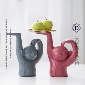 简植家居批发北欧创意树脂猴子摆件托盘工艺品收纳盘置...