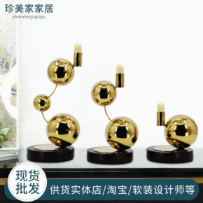 现货批发 轻奢烛台摆件金色不锈钢北欧餐桌装饰浪漫简...