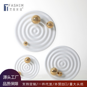 现代简约北欧风软装样板房圆形白色壁挂装饰品酒店别墅...