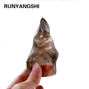 天然茶水晶原石打磨雕刻火炬火焰小摆件风风火火家居风...