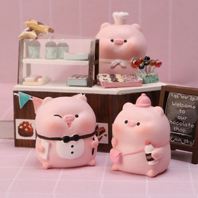 轻语卡通可爱猪猪餐厅盲盒手办桌面摆饰树脂工艺品创意...