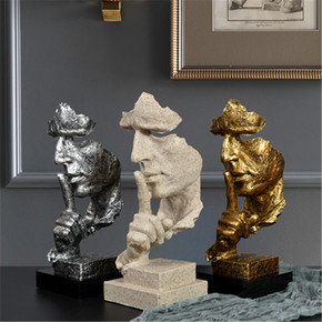 现代简约沉默是金树脂工艺品摆件北欧雕塑办公室客厅电...