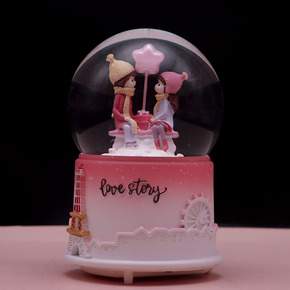 与你同行水晶球音乐情人节摆件礼物桌面装饰品音乐盒树...