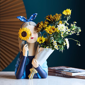 跨境北欧创意家居摆件客厅装饰品思考者抽象人物砂岩装...