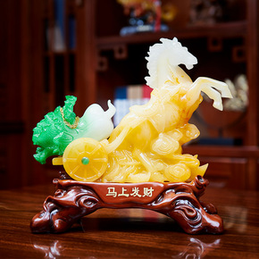 马上发财家居办公室树脂工艺品马拉白菜摆件乔迁开业礼...