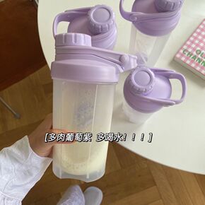 芝士葡萄啵啵温柔紫色大容量刻度运动摇摇水杯高颜值软...