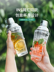 pc雪克杯亚克力调酒器带刻度摇杯奶茶专用工具雪克壶...