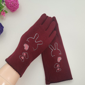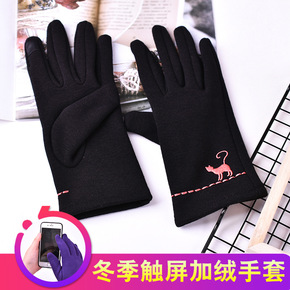 韩版冬季女士触屏手套不倒绒保暖刺绣女士手套时尚触屏...