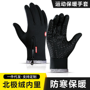 户外防水手套冬季全指拉链触屏防风保暖骑行运动抓绒登...