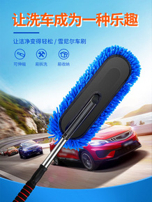 洗车拖把软毛刷车不伤车长柄伸缩除尘车掸专业用汽车擦...