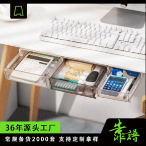 带把手隐藏抽屉笔盒办公室桌底粘贴收纳盒 简约大容量...