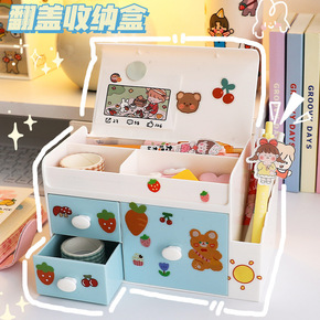 创意可爱桌面收纳盒塑料抽屉式办公室家用化妆盒学生整...
