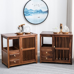 移动茶柜鸡翅木茶水柜烧水茶台桌胡桃木茶边柜家用置物...