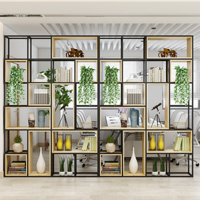 现代简约落地书架铁艺办公隔断柜博古架样板房置物架工...