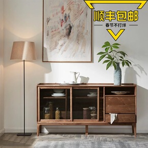 北欧实木餐边柜 家用客厅多功能橱窗储物柜酒店民宿简...