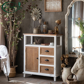 民宿装饰柜复古客厅玄关柜木质做旧阳台杂物柜储物柜美...