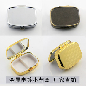 随身便携带化妆镜小药盒两分格饰品收纳盒折叠便携带外...