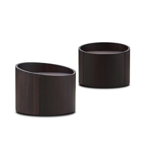 北欧设计创意烟熏色抽屉轻奢实木简约现代圆形柜体in...