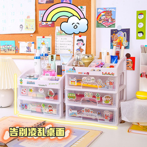 INS风桌面收纳盒 抽屉式多层透明学生文具化妆品整...
