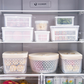 厨房长方形水果密封收纳盒蔬菜篮冰箱沥水保鲜盒带盖塑...
