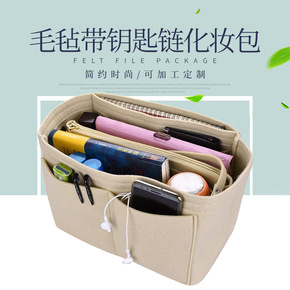 多功能大容量化妆包毛毡包中包折叠拆卸收纳包毛毡化妆...