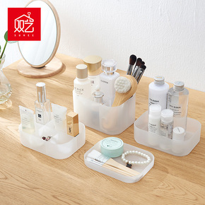 双艺塑料磨砂透明化妆品收纳盒梳妆台桌面网红简约整理...