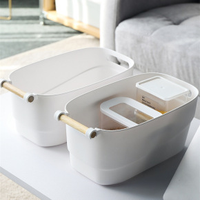 塑料篮子长方形文具儿童收纳篮双耳加厚储物盒无盖木柄...
