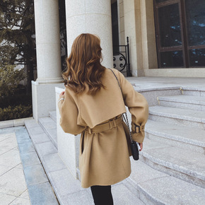 2021潮ins冬季气质收腰韩版女双面尼毛呢外套山...