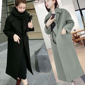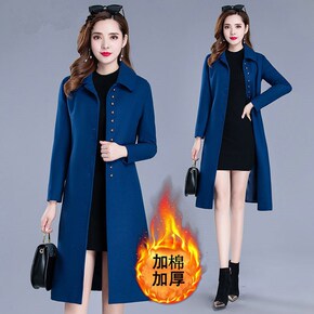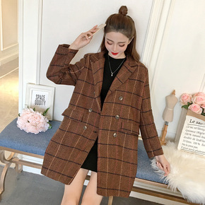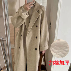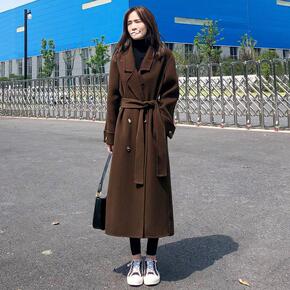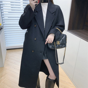 呢子大衣女2021秋冬新款韩版西装领时尚双排扣过膝...