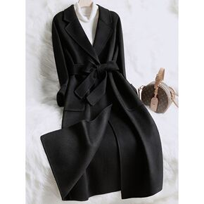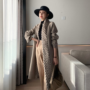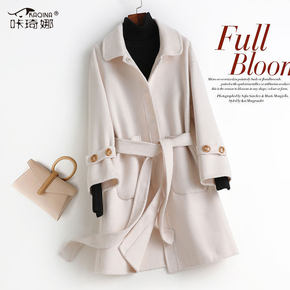 反季清 大气气质双排扣腰带长款双面呢大衣外套女20...